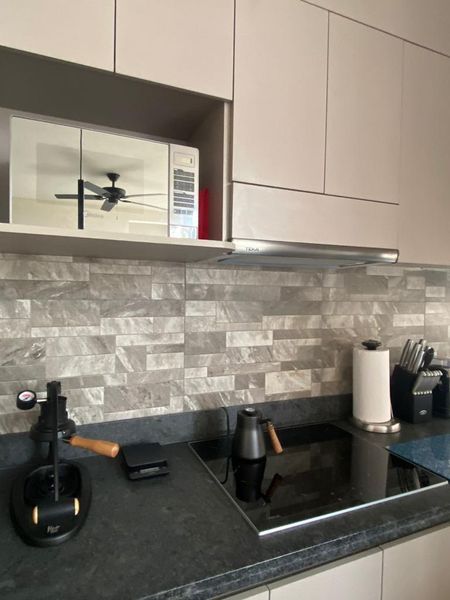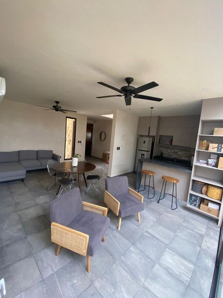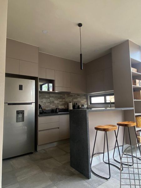+ Cocina integral con estufa de inducción Teka y campana. Barra de granito y gabinetes de piso a techo, tarja y llave.