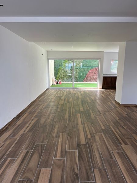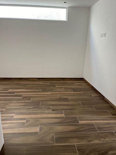 En planta baja cuenta con estacionamiento para dos autos, cisterna, sala comedor, jardín trasero, cuarto de lavado y pasillo lateral, cocina equipada, sala comedor, recámara con baño completo y medio baño de visitas.