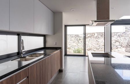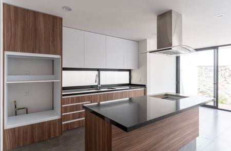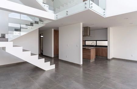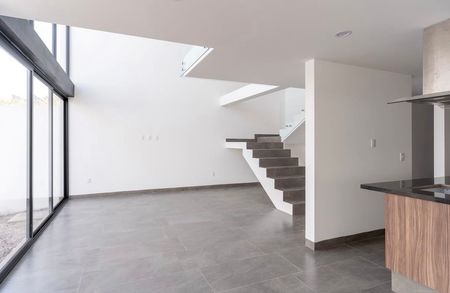 PLANTA BAJA: SALA A DOBLE ALTURA, COCINA CON ISLA, ALACENA, ESTUDIO, CUARTO DE LAVADO, MADIO BAÑO, JARDIN CON TERRAZA Y PASILLO LATERAL.