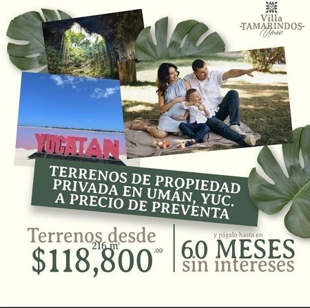 VILLA TAMARINDOS UMÁN, ES UN COMPLEJO DE 186 LOTES DONDE SE OFRECE LA MEJOR OPCIÓN DE INVERSIÓN, CON LA CARACTERÍSTICA PRINCIPAL DEL RENDIMIENTO DE TU DINERO.