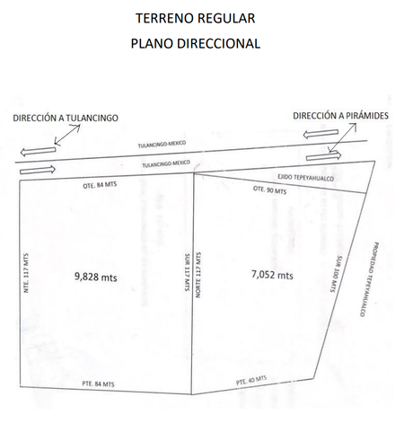 Venta de terreno ubicado sobre la carretera Tulancingo -Pirámides, localidad Venustiano Carranza en el Municipio de Zempoala en el Estado de Hidalgo.