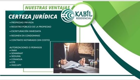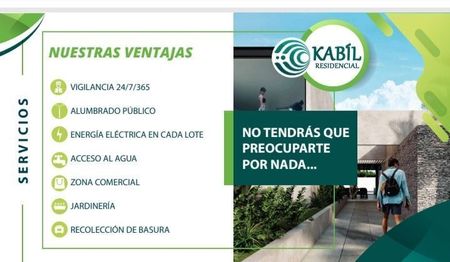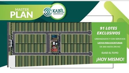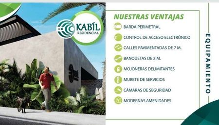 Venta de Terrenos en Mérida Yucatán. Kabil es un desarrollo Residencial de 91 lotes exclusivos desde 300 m2 a 390 m2 listos para escriturar con certeza jurídica, autorizaciones y permisos del INAH y Semanart. Ofrecemos financiamiento de 12 a 48 meses, enganche del 25 %. También contamos en el proyecto de terreno y construcción con diferentes amenidades como alberca, trotapista, chancha de padel, gimnasio, kid's club entre otras. El costo es de $1,870 por m2. Una excelente inversión. Esperamos su llamada sera un placer atenderle!!