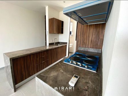 - Cocina integral con estufa eléctrica incluye gavetas inferiores, superiores y campana.