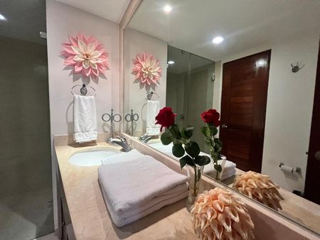 4 recámaras con baño completo cada una, una de las recámaras secundarias comparte baño con área social. Dos recámaras con terraza al mar y dos con vista al golf.