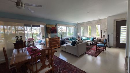 Área de TV con persianas hacia el pasillo para que los invitados que necesiten dormir ahí tengan privacidad.