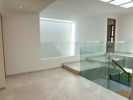 Residencia nueva de 4 recamaras con vestidor y baño, sala - comedor con salida al jardín, recibidor, cocina equipada, desayunador, alacena, sala de T.V. estudio, recibidor, espacio para área de juegos, estacionamiento 6 autos, jardín 170 mts con riego por aspersión y terraza con pergola, cuarto de servicio con baño completo, área de lavado.