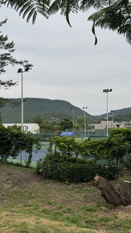 El terreno colinda por la parte de atrás con la barda de la privada y por el frente con un parque.