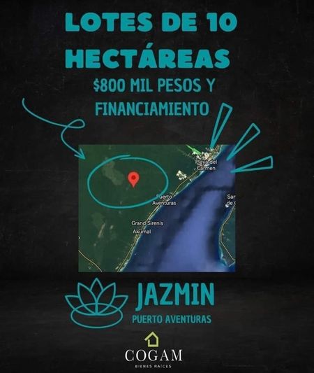 VENTA TERRENOS DE 10 HECTARIAS PUERTO AVENTURAS.QUINTANA ROO.