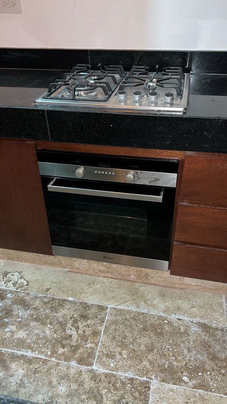 Cocina equipada con carpintería barra de granito parrilla electrica y horno