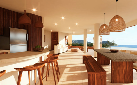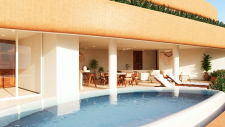 Las villas serán sustentables y orgánicas en toda su planificación arquitectónica, la alberca estará en la parte superior del restaurante con una palapa y un asador. Por supuesto, habrá un ascensor para llegar a la piscina, al estacionamiento, a la sala de reuniones y también a los garajes privados.