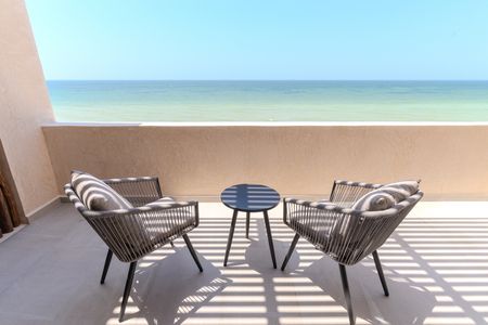El departamento cuenta con terraza, sala, cocina integral, comedor, dos habitaciones, un baño completo, un lugar de estacionamiento y acceso a áreas comunes, como elevador y cuarto de servicio o bodega según uso. Además, de contar con puertas, gabinetes y alacenas de madera con acabados de alta calidad.