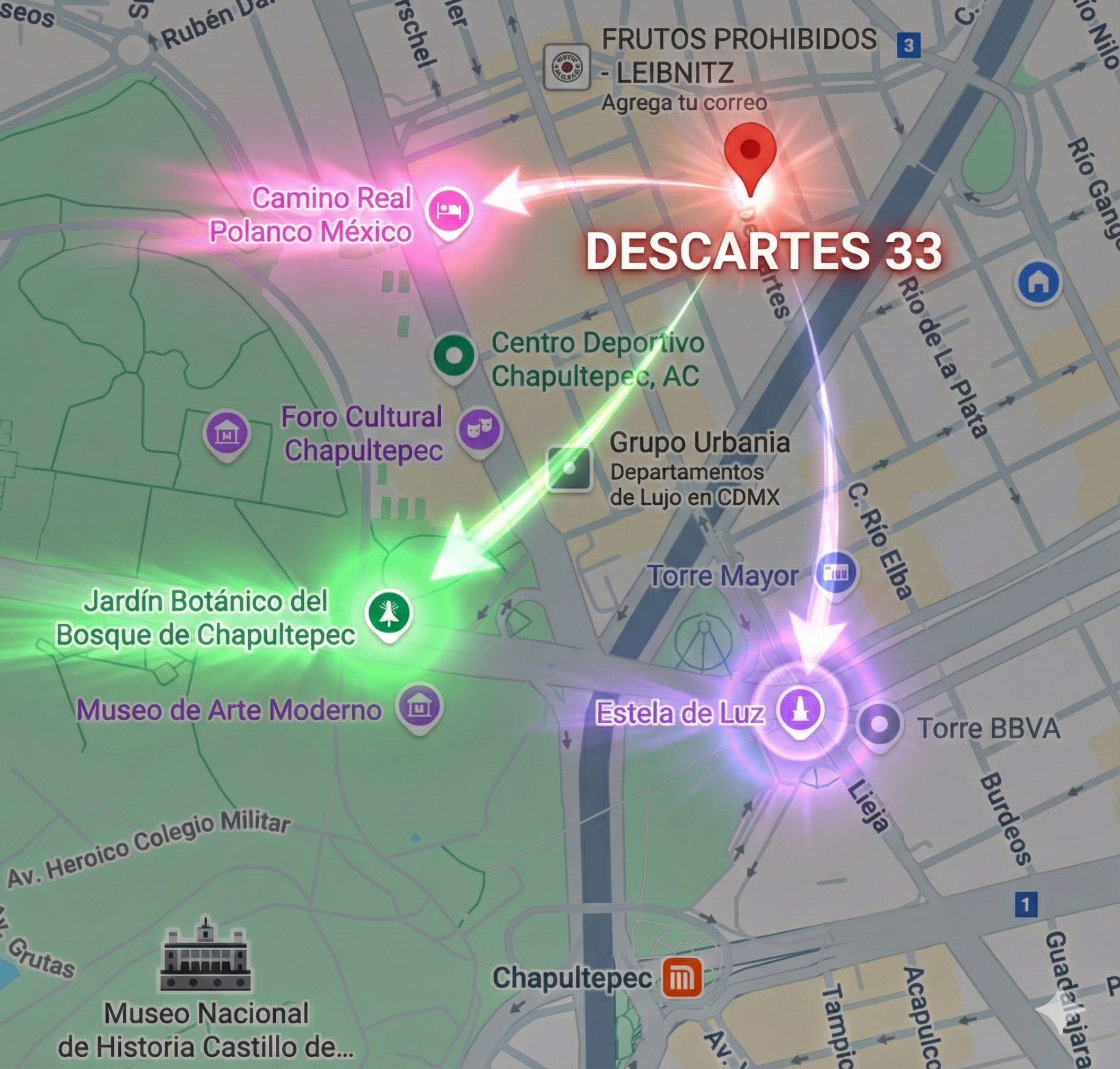 Inmueble situado en una zona de alta demanda. Se encuentra a tan solo dos cuadras del Hotel Camino Real Polanco y a pasos del Bosque de Chapultepec y la Estela de Luz. Ofrece acceso inmediato a la zona corporativa de Paseo de la Reforma (Torre BBVA, Torre Mayor, etc. y conexión directa con Polanco y Condesa.